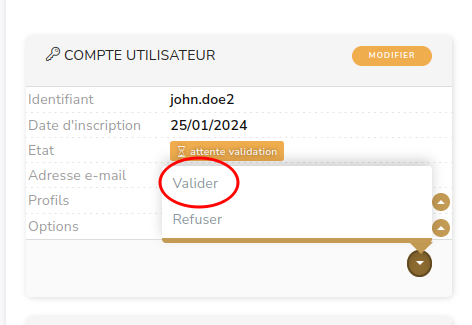 Tu peux maintenant valider le compte utilisateur pour activer l'accès.