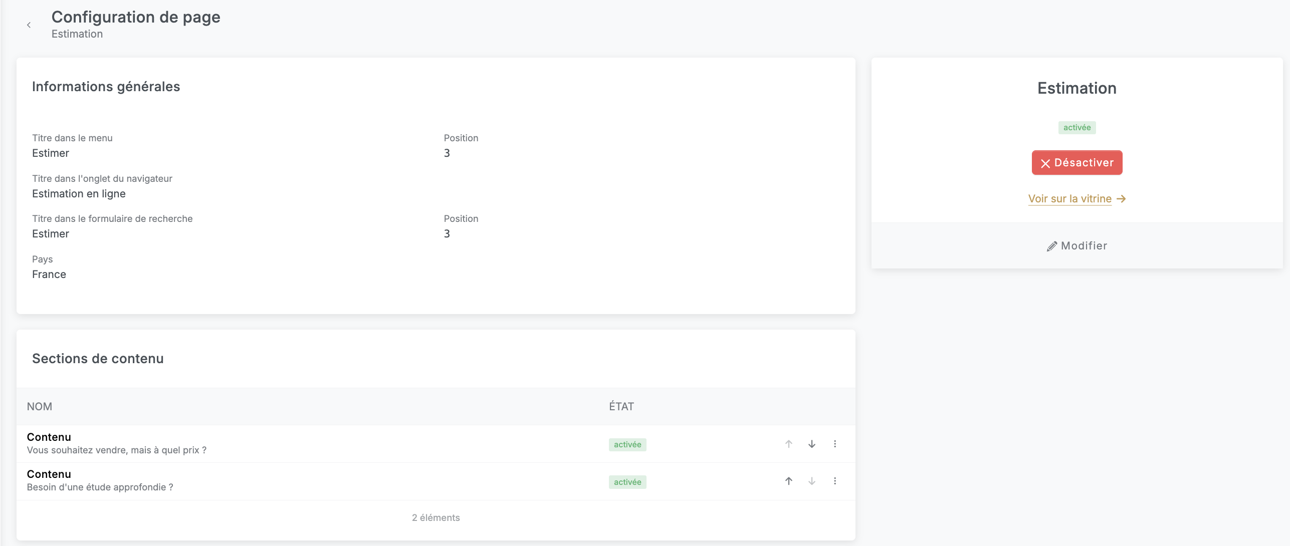 • État : La page est activée par défaut, mais peut être désactivée si besoin.