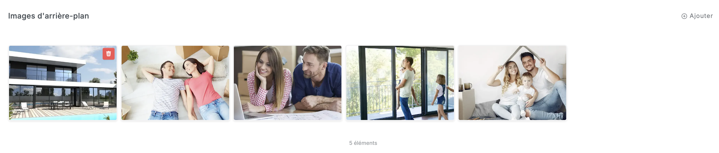 Dans cette section, vous pouvez ajouter ou supprimer des images utilisées en arrière-plan sur la page d’accueil.