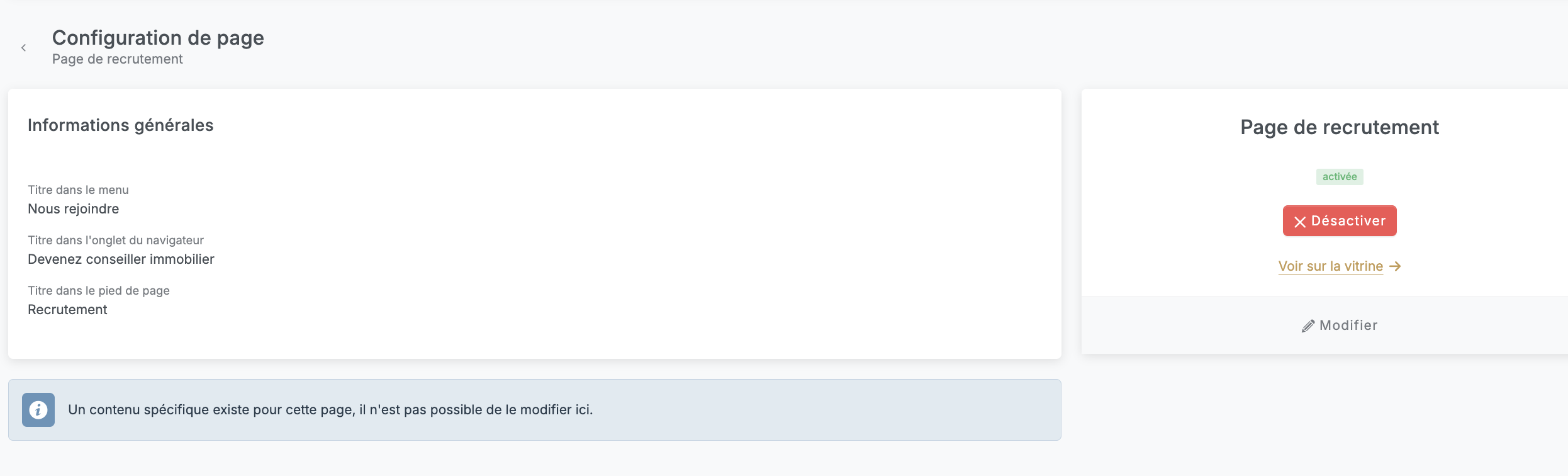 • La page est activée par défaut, mais peut être désactivée si nécessaire.