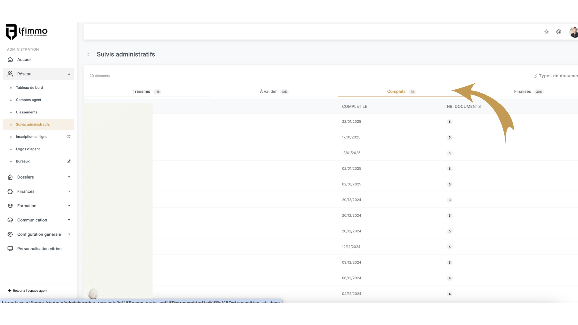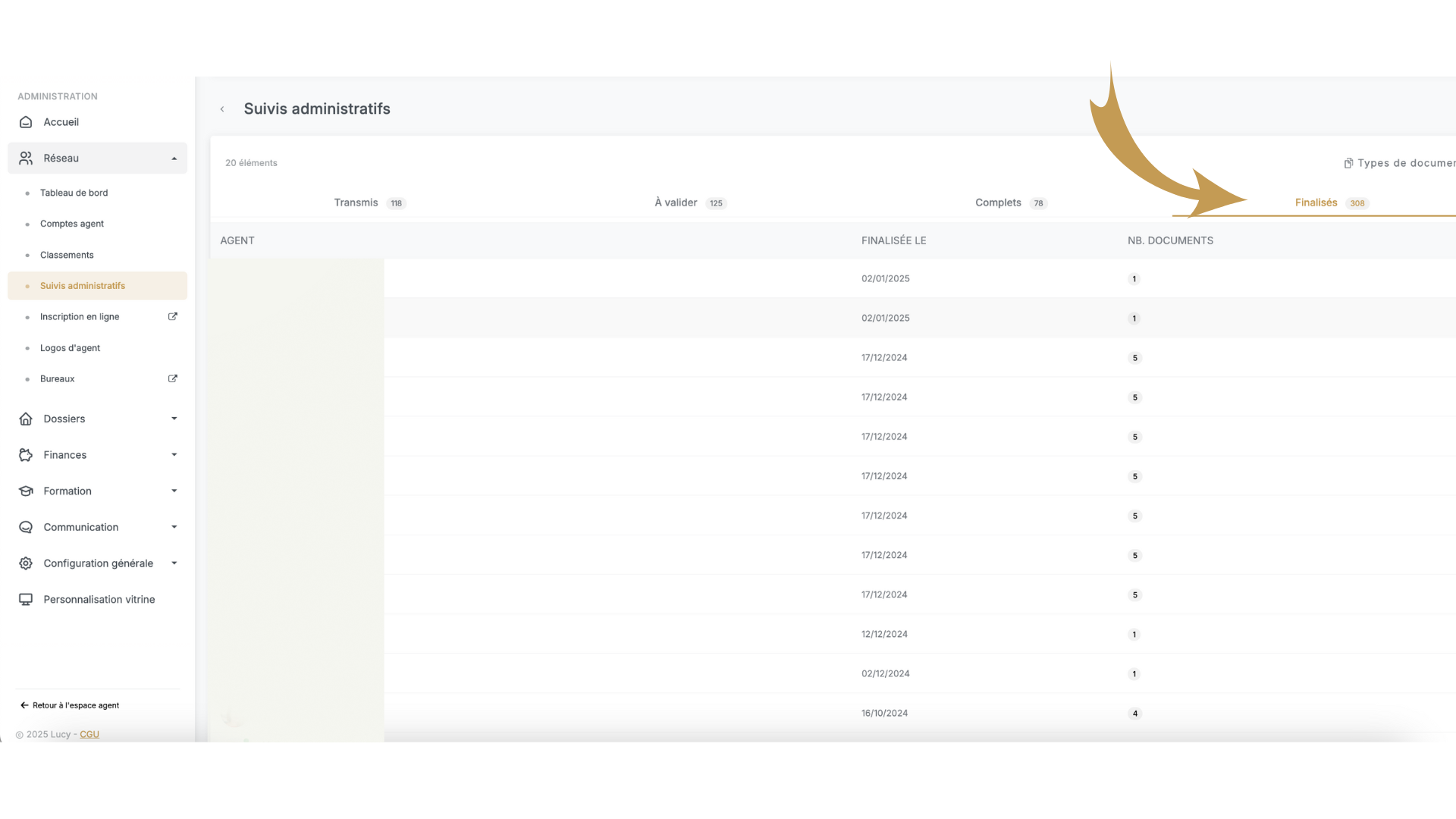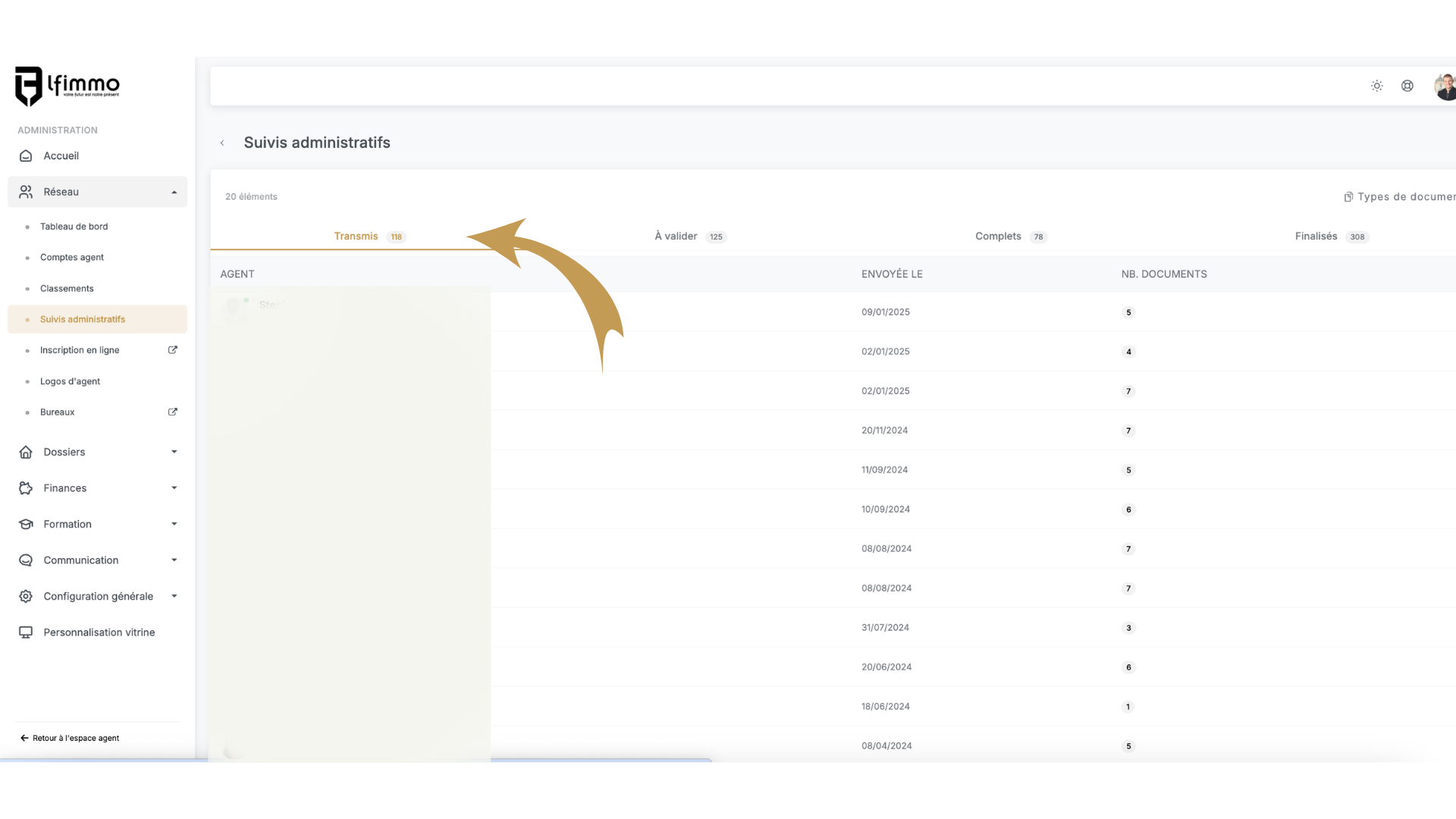 • Cette section regroupe les agents ayant commencé à transmettre des documents.