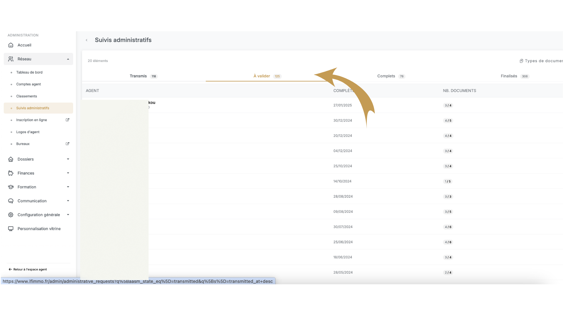 • Si des pièces sont mises à jour ou nécessitent un complément, le dossier peut revenir dans la section “À Valider”.